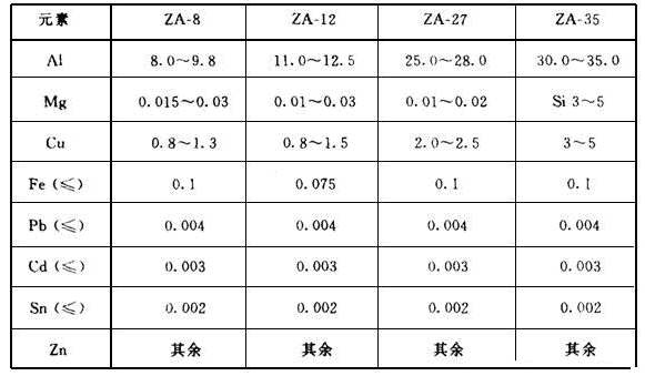 Table 1 Zinc alloy casting material spec for Gravity Die casting (Wt%) |